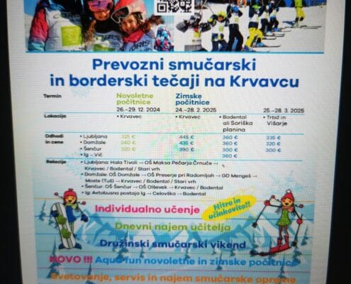 - šolo smučanja in smučarske tečaje
