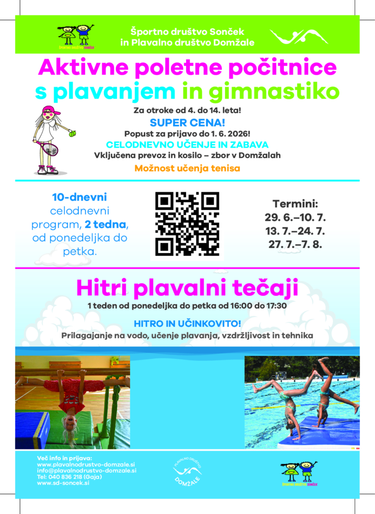 NoviceODPRTE PRIJAVE ZA POLETNE POČITNICE IN HITRE PLAVALNE TEČAJEPD Domzale + SD Soncek_letak_Sola plavanja in gimnastike 2026_v41. 4. 2026 https://www.sd-soncek.si/wp-content/uploads/2026/04/PD-Domzale-SD-Soncek_letak_Sola-plavanja-in-gimnastike-2026_v4-1-pdf.jpg 1623 1185 admin https://www.sd-soncek.si/wp-content/uploads/2026/03/logo_soncek-removebg-preview-1.png admin2026-04-01 21:26:152026-04-01 21:27:10ODPRTE PRIJAVE ZA POLETNE POČITNICE IN HITRE PLAVALNE TEČAJE